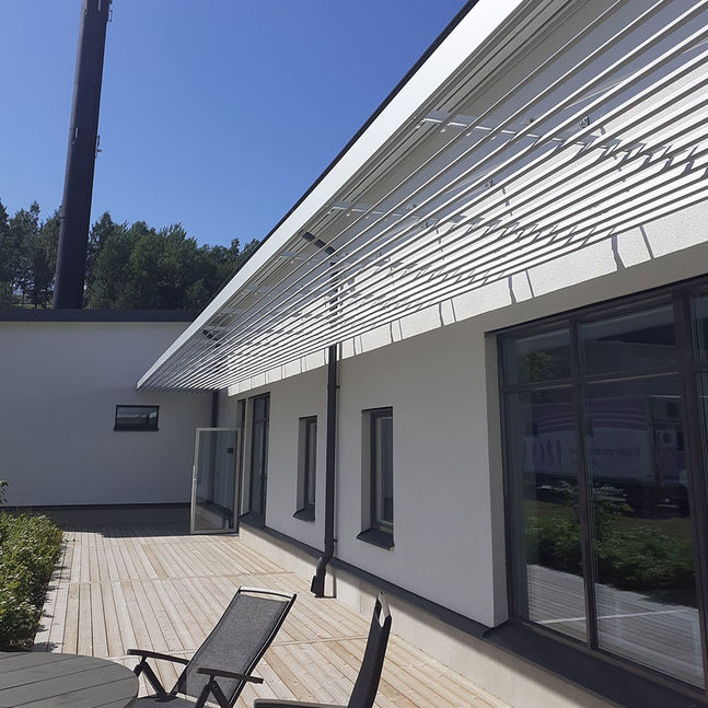 Solskärmar består av ett profilsystem som är anpassat för fast solavskärmning och fasadgaller. Solskärmarna är konstruerade att fungerar lika bra på nyproducerade som befintliga fastigheter.